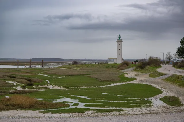 Heute ist der Leuchtturm ein wichtiger Navigationspunkt für Schiffe, die in die Somme-Mündung einlaufen. Seine rot-weiße Struktur hebt sich bei klarem Wetter von der Umgebung ab – an diesem düsteren Tag jedoch wirkte er fast bedrohlich.