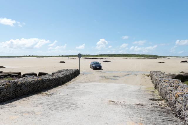 Omey Island (irisch Iomaí) befindet sich in der Nähe von Clifden und kann bei Ebbe über einen breiten Sandstrand erreicht werden. Dies ist auch mit dem PKW möglich, da eine "Fahrrinne" gut markiert ist - doch denkt man bei der Überfahrt ununterbrochen "bloß nicht anhalten".