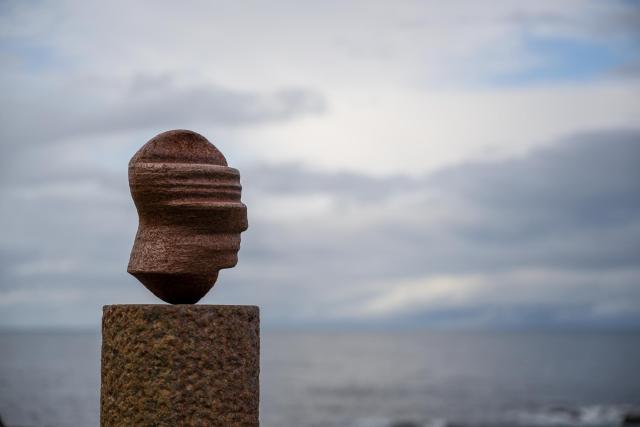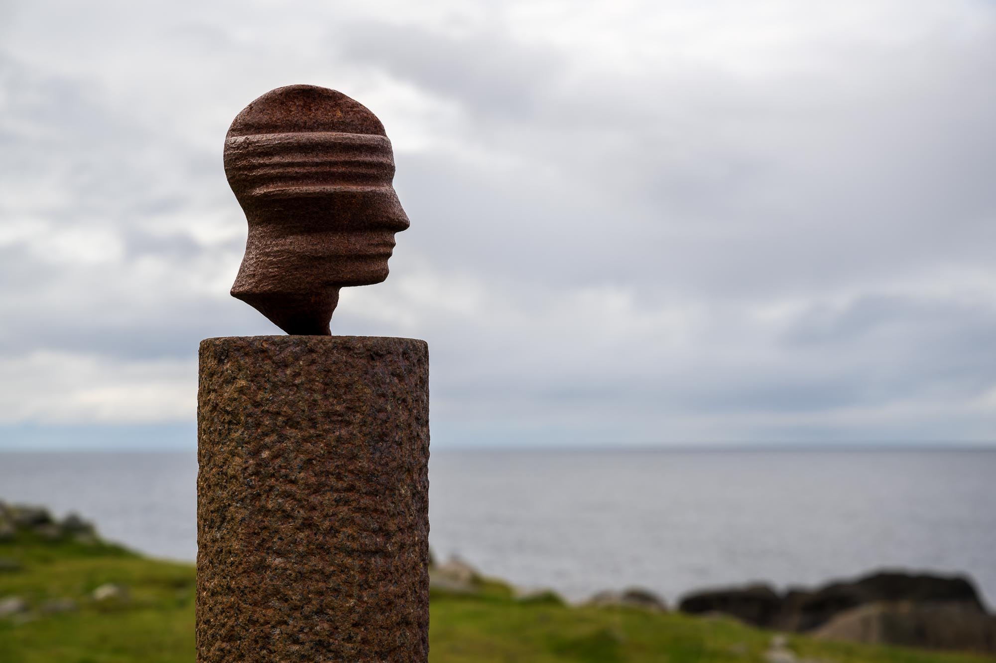 Die Skulptur "Kopf" von Markus Raetz ist Teil der norwegischen Skulpturenlandschaft Nordland und steht im ... Nirgendwo. Zumindest hat man den Eindruck, wenn man in Eggum auf den Lofoten aufbricht, die Küste entlang zu wandern und plötzlich eine schlanke Säule mit einem Kopf vor einem aufragt. Diese ist so mit der Landschaft verbunden, dass sicher der ein oder andere an ihr vorbei läuft.