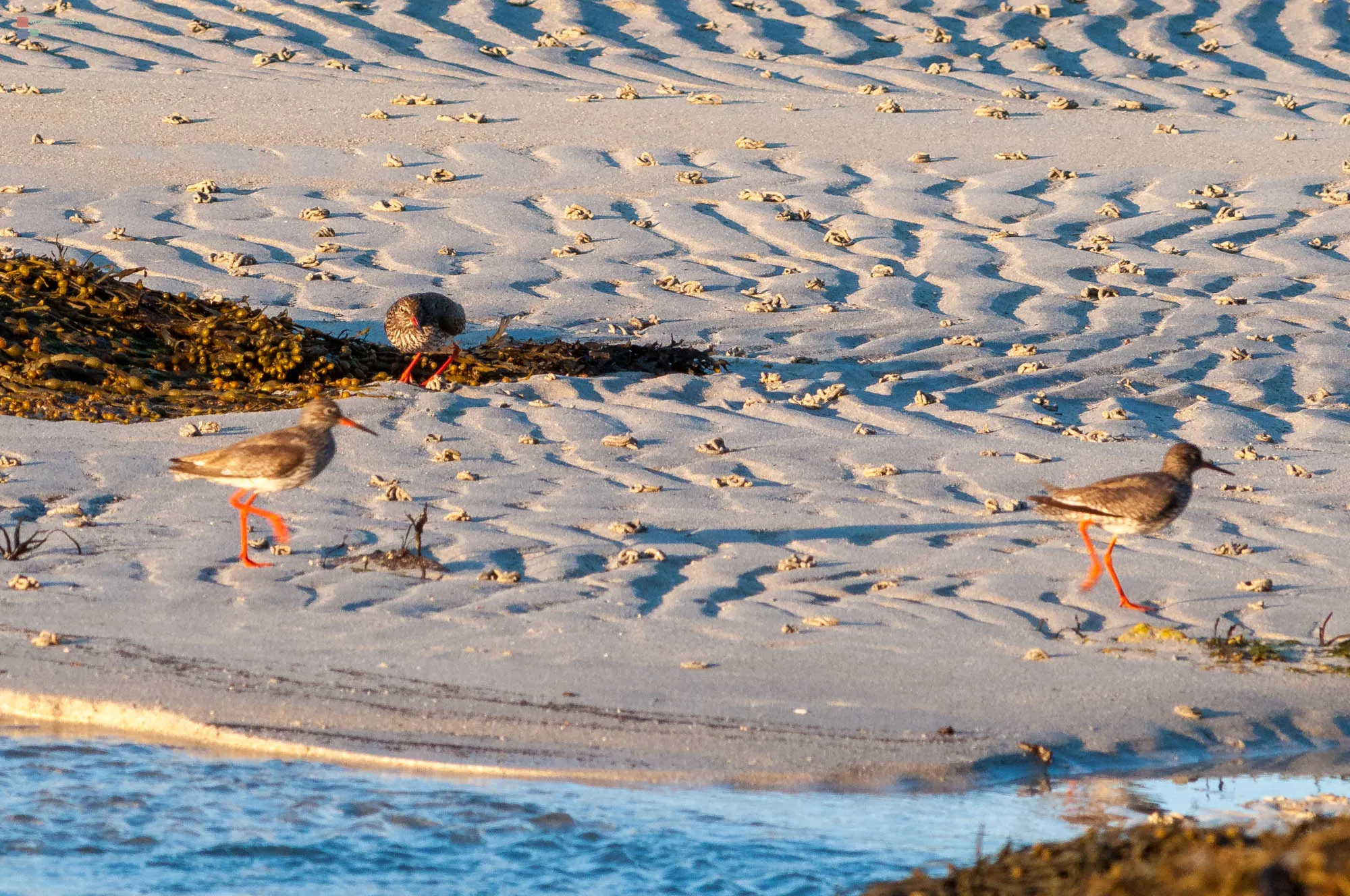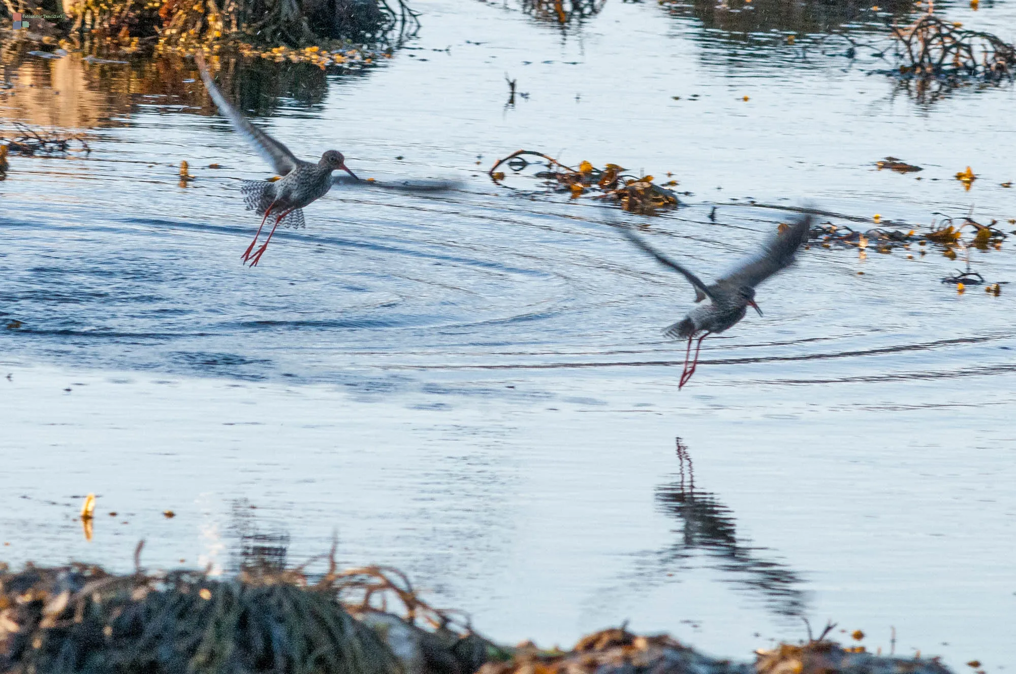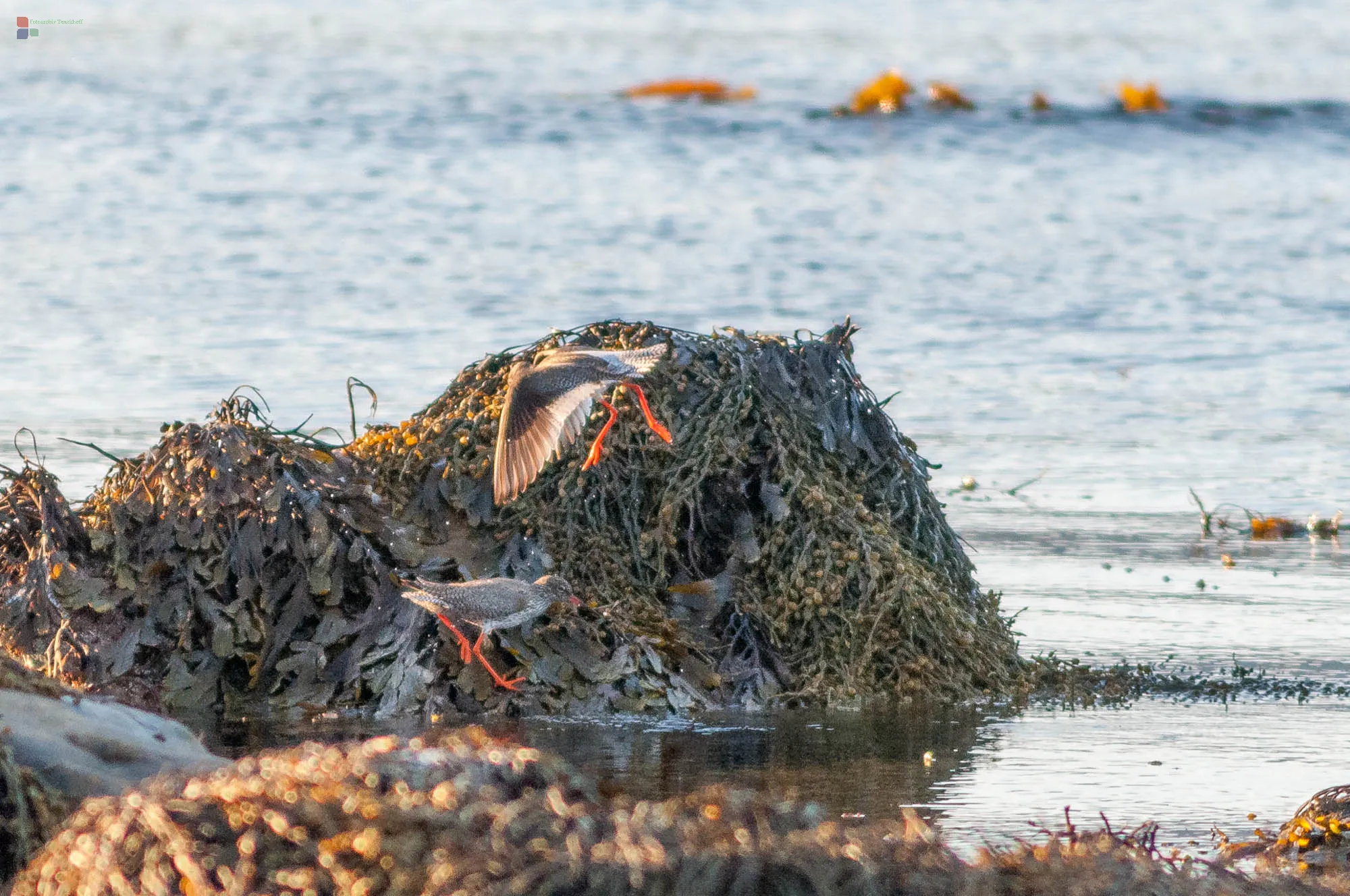 Der Rotschenkel zählt zu den Schnepfenvögeln (Scolopacidae) in der Ordnung Regenpfeiferartige (Charadriiformes) und lebt in fast ganz Eurasien an Küsten und Gewässern. Mit rund 30 cm Größe ist er ausgewachsen etwas kleiner als sein Verwandter, der Grünschenkel. In Deutschland kann man ihn gut am Wattenmeer beobachten. Hier zeigt er sich auch gerne in größeren Ansammlungen. Wir haben ihn direkt vom Haus aus auf den Lofoten fotografieren können, wo wir unser 500 mm f/4,0 Nikkor bequem auf der Veranda aufbauen konnten. Von hier ließ sich das fröhliche Treiben der Vögel gut beobachten und ablichten.
