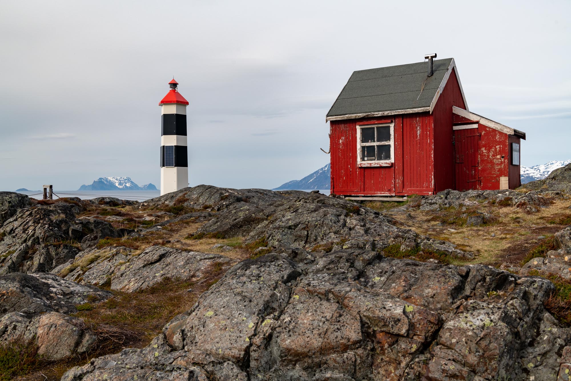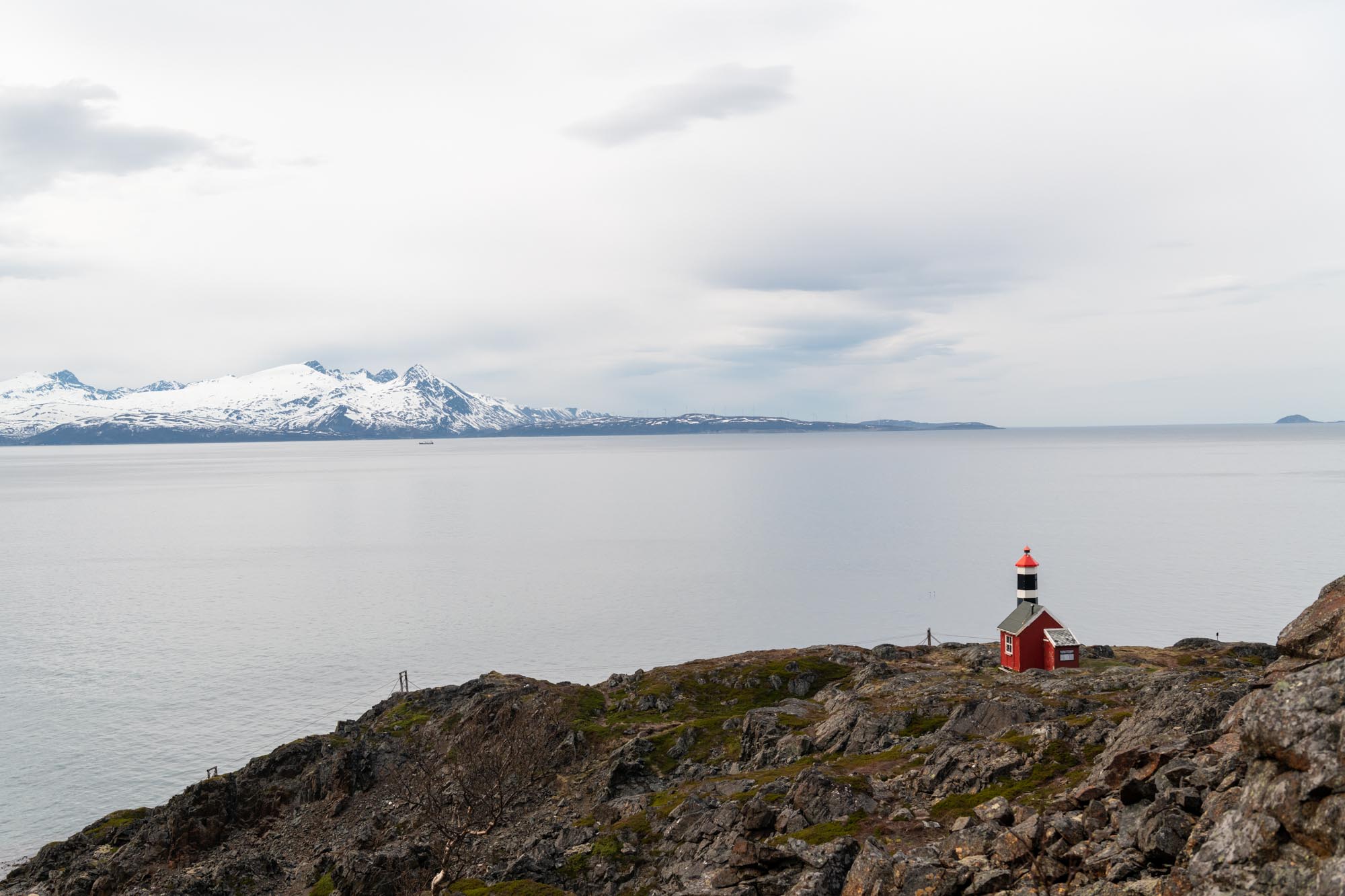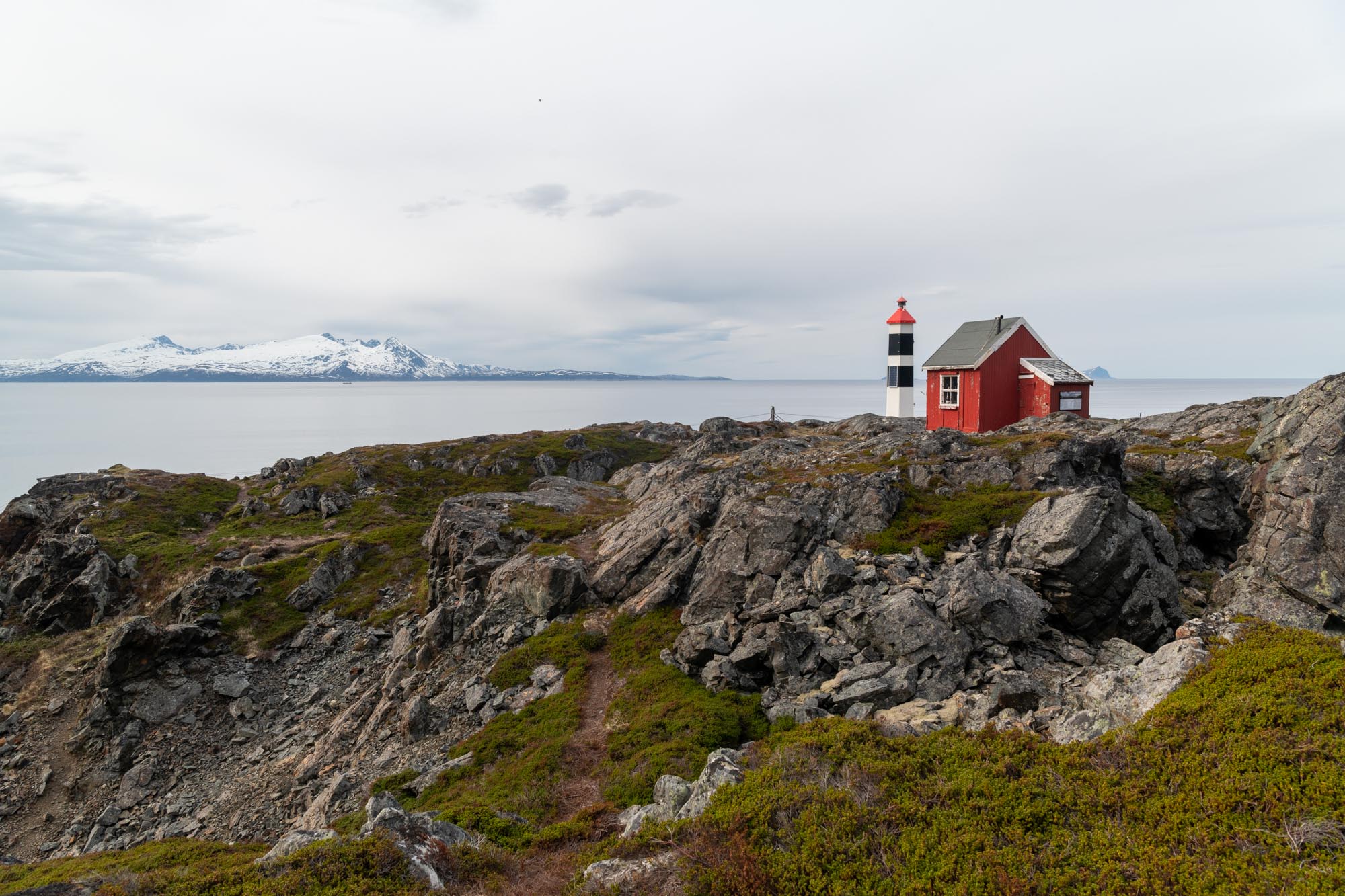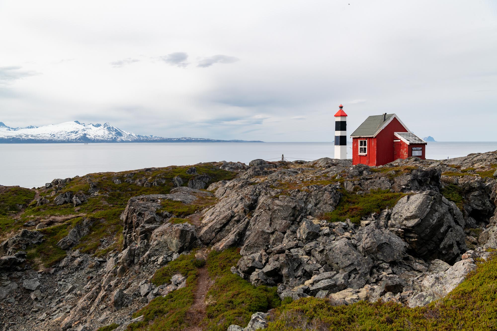 Am äußersten Punkt der Lyngen Alpen wo Barentssee, Ulls- und Lyngenfjord zusammenkommen, bewacht der Lyngstuva Leuchtturm auf dem Sørklubben die Schifffahrtswege. Die Kraxelei hoch zum Leuchtturm wird mit einer fantastischen Fernsicht belohnt.