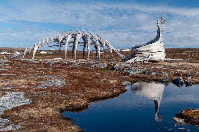 Die Drakkar-Leviathan Skulptur wurde im Sommer 2016 vom Team Taibola Assemble aus Archangelsk/Severodvinsk errichtet. Diese Installation ist Mahnmal aber auch eine Hymne an die Arktis, die Natur und die Menschen. Hat man diese außergewöhnlich Skulptur auf sich wirken lassen, so geht es weiter zum nördichsten Punkt der Insel, auf dem ein Leuchtfeuer und ein Felsenturm errichtet wurden.