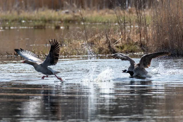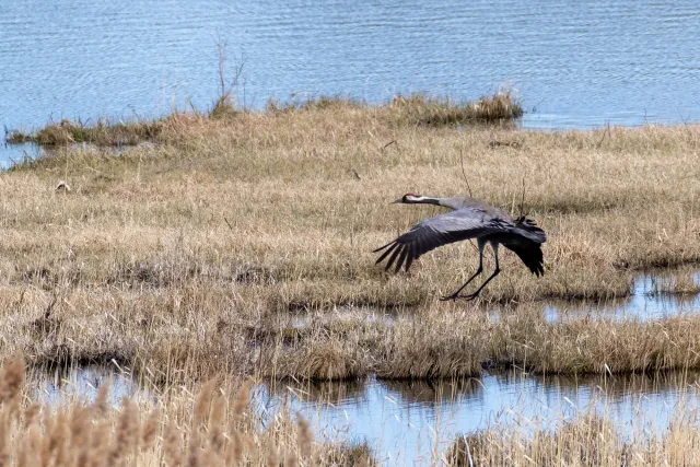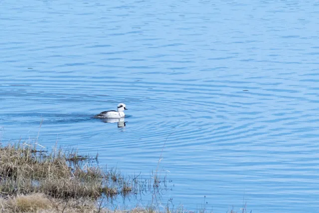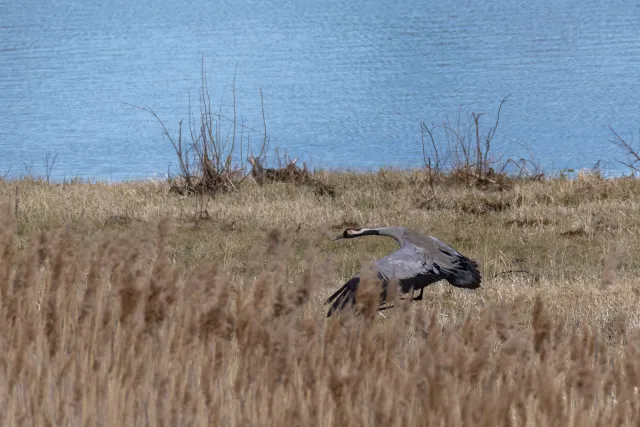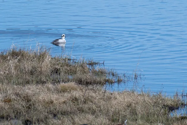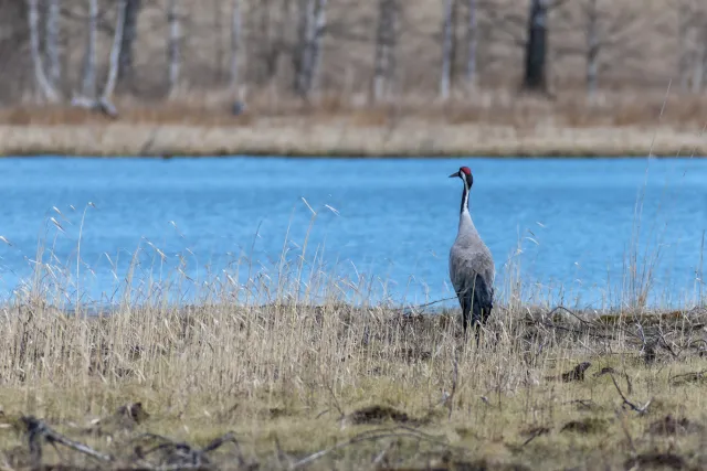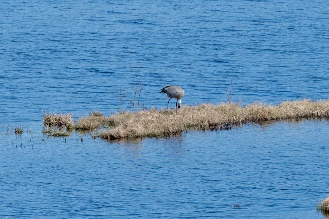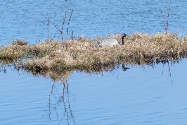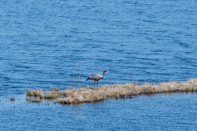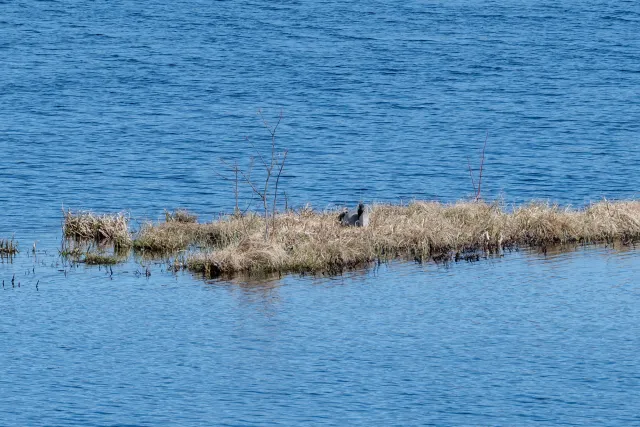 So sahen wir in kurzer Zeit nicht nur die geplanten Ohrentaucher sondern u.a. auch Seeadler, Rohrweihen, Kanadagänse, Reiherenten, Schellenten, Zwergsäger und als besonderes Highlight, einen Kranich, brütend auf einem Gelege mit 2 Eiern!