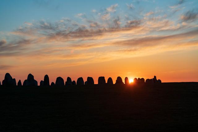 Bei Sonnenuntergang ergeben sich schöne Fotomotive und die beeindruckende Szenerie mit ihren besonderen Augenblicken, wenn sich die Sonne durch die Menhire bewegt und schließlich am Horizont verschwindet, läßt an Wikinger und die nordische Sagenwelt denken.