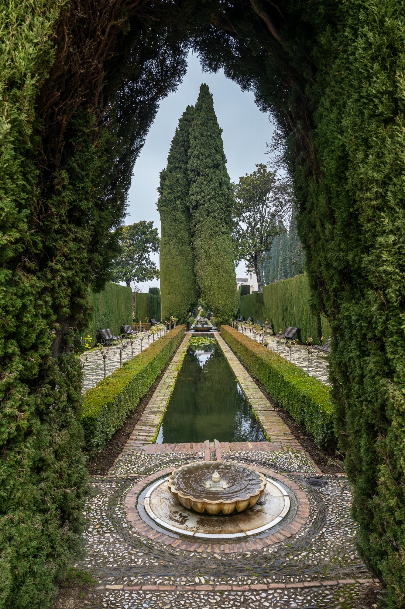 Im Palacio de Generalife, dem ehemaligen Sommerpalast der Nasriden-Sultane von Granada aus dem 13. Jahrhundert, fühlt man sich zuweilen in die Welt der Märchen aus Tausendundeine Nacht versetzt. Überall gurgelt es - Wasserspiele über langen Becken und wunderschön gestaltete Brunnen umrahmt von Zypressen und maurischen Säulengängen entfalten den Zauber vergangener Zeiten.