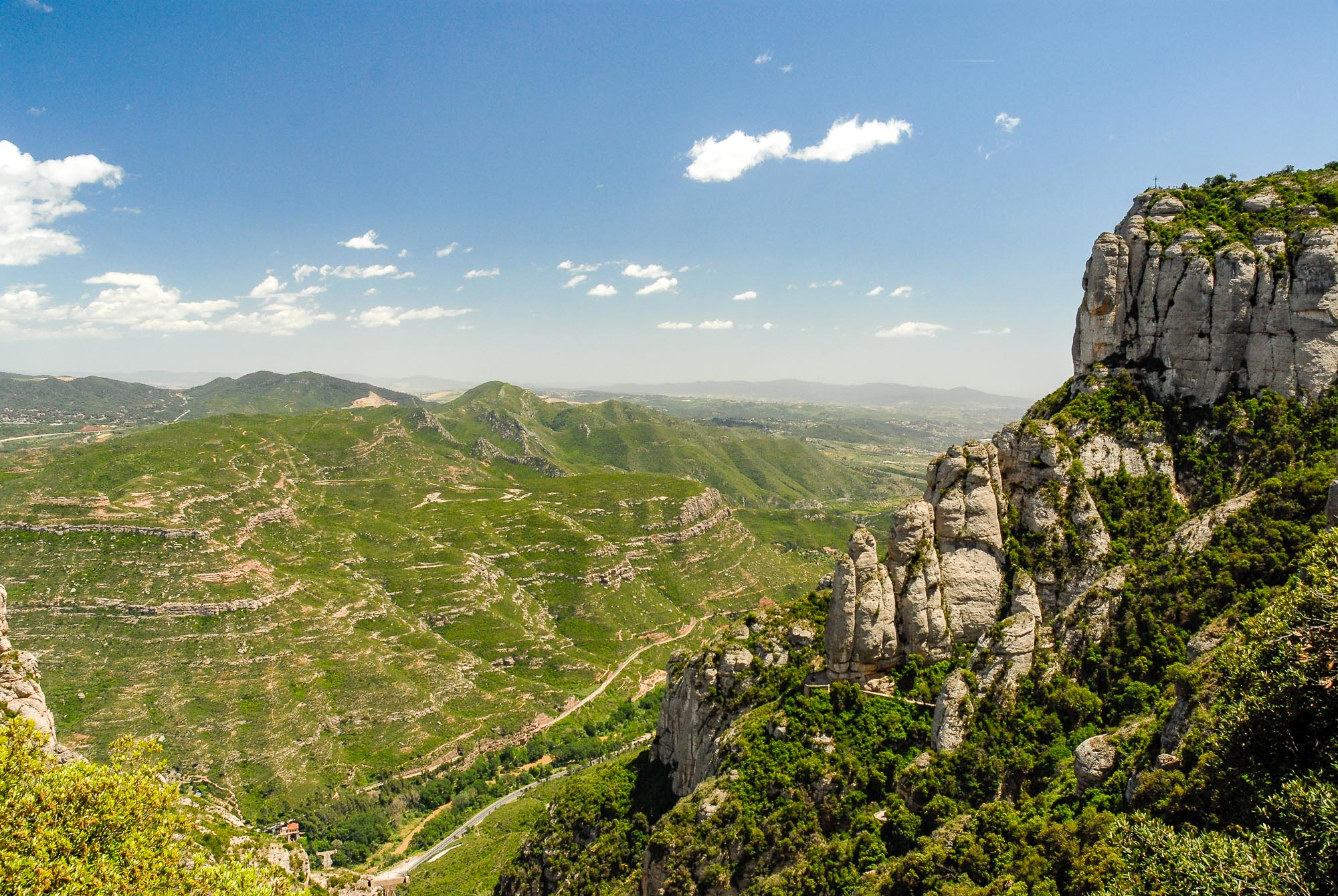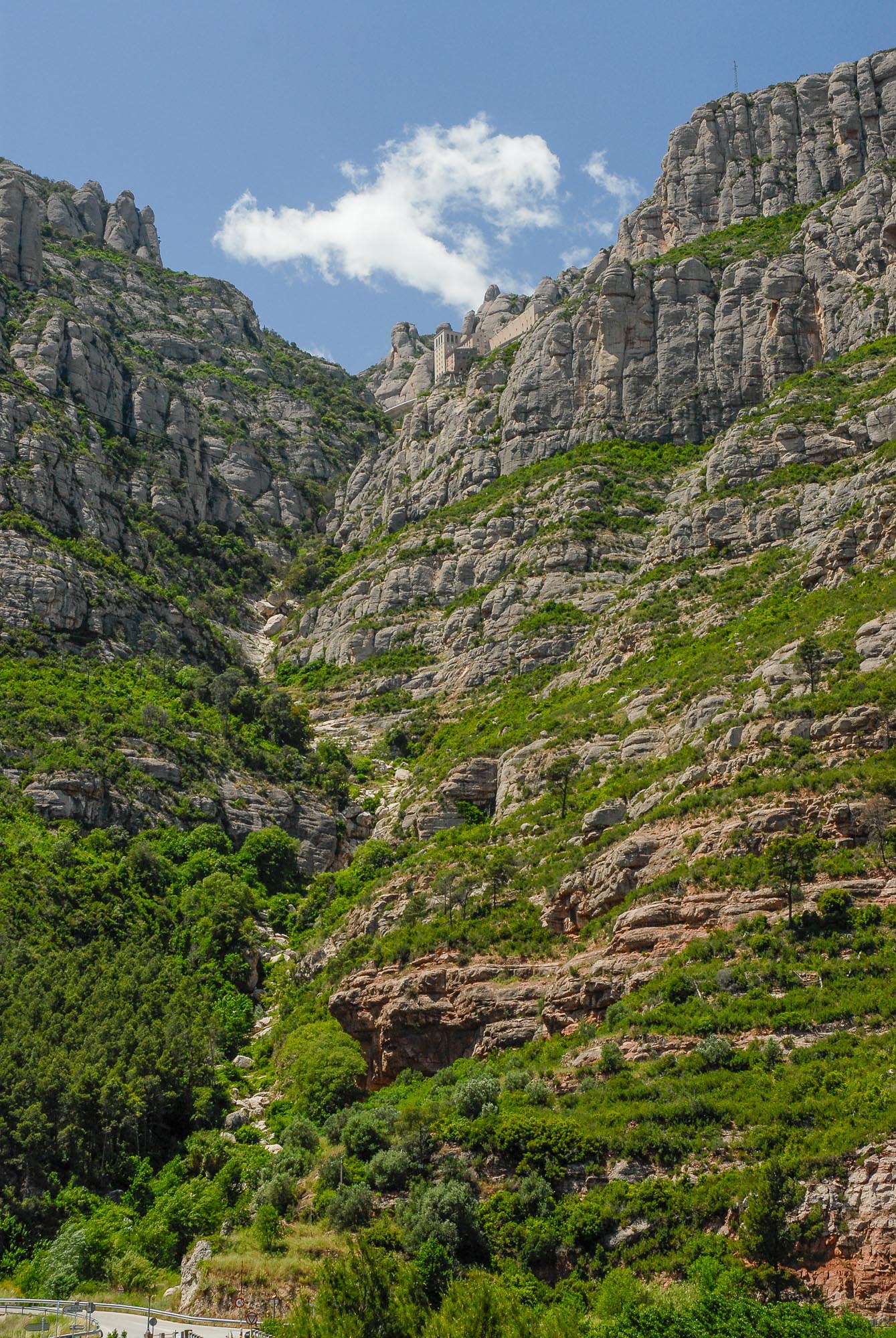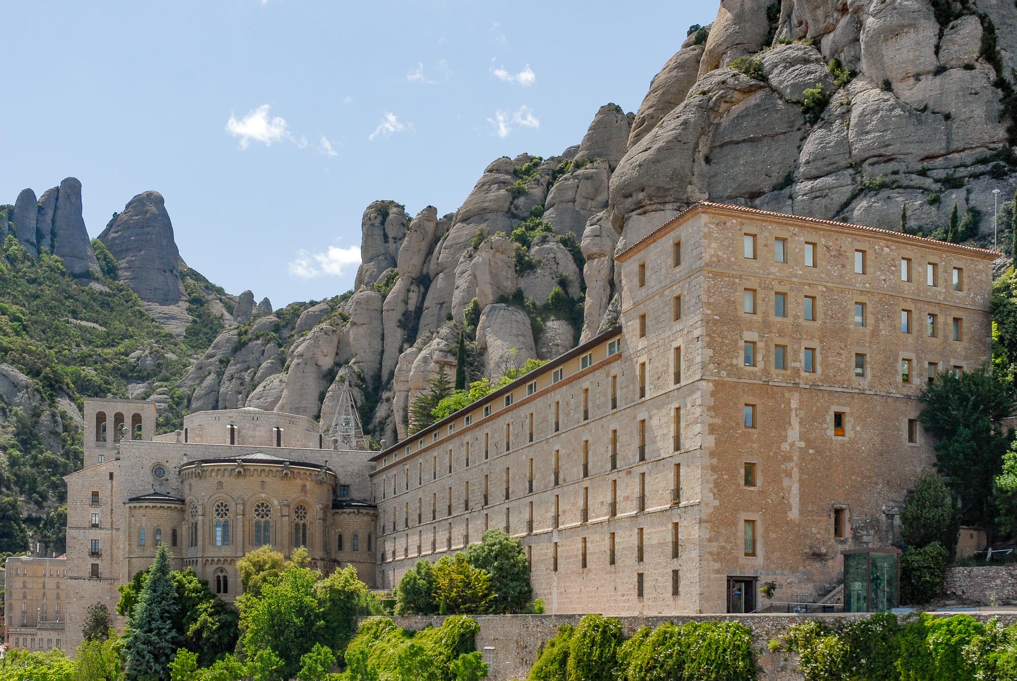 Das Benediktinerkloster Santa Maria de Montserrat liegt eingebettet wie ein Vogelnest unter den Spitzen des 1236 Meter hohen Berges Montserrat. Barcelona ist etwa 45 km entfernt, doch läßt die Fernsicht in das katalanische Hinterland Ausblicke bis fast zu dieser schönen Stadt zu, wäre sie nicht von dem Conserolla-Gebirge verdeckt.