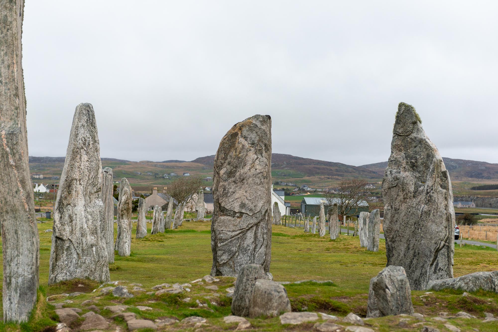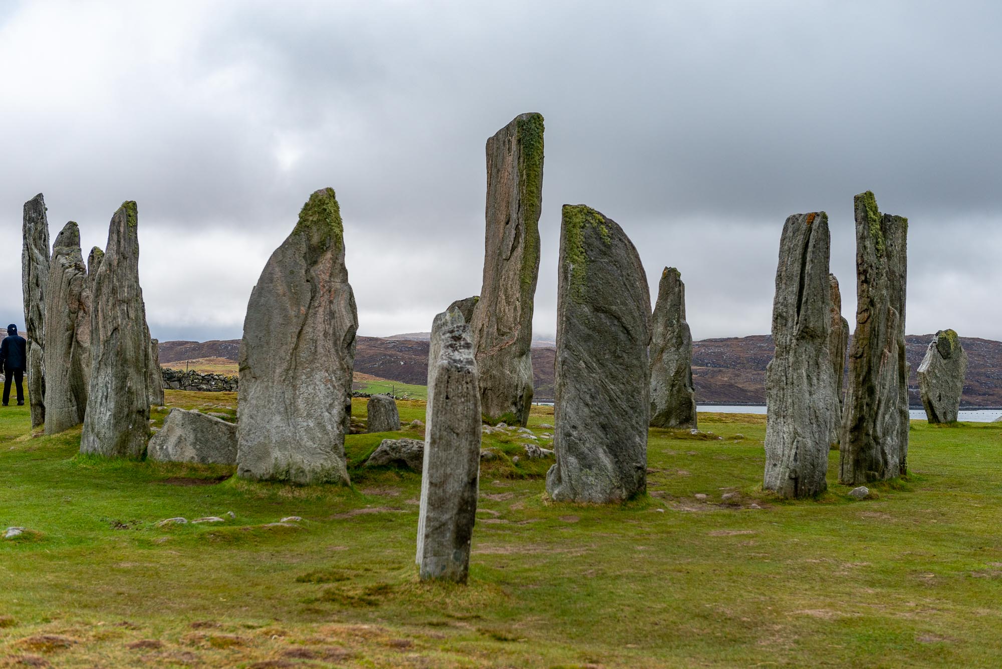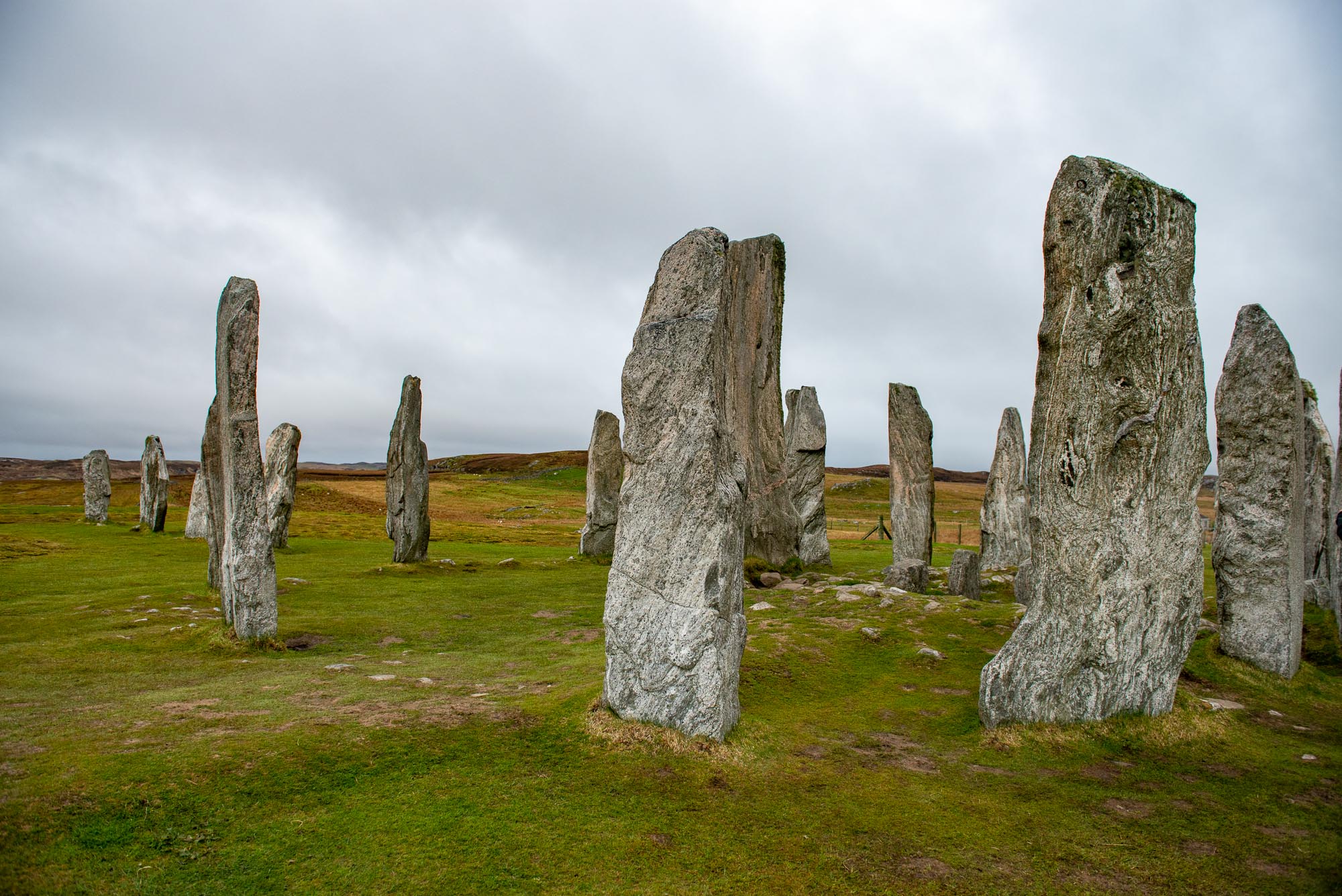 Callanish, die größte Steinformation der Megalithkultur auf den britischen Inseln, befindet sich auf den Äußeren Hebriden und zwar auf Lewis der Schwesterinsel von Harris. Callanish auch Calanais genannt, liegt bei Breasclete, wo bereits 12 von vermutlich 20 Steinsetzungen ausgegraben wurden. Bei diesen Konstruktionen handelt es sich vor allem um Steinreihen (Alignements) und Steinkreisen, die während der Jungsteinzeit - etwa 3000 v. Chr. - errichtet wurden. Bei den Steinkreisen werden sie auf einer Schautafel sogar bereits im Jahr 5000 v. Chr. verortet.
