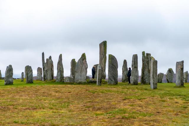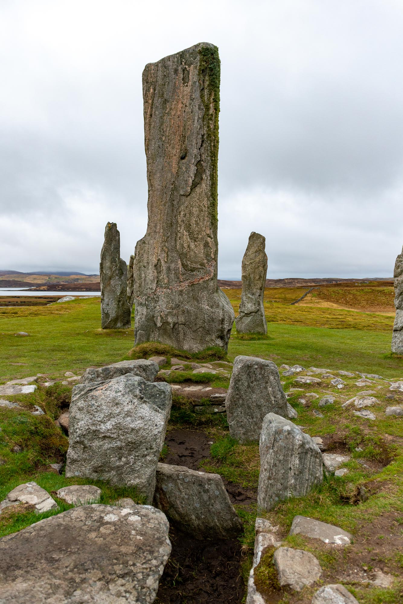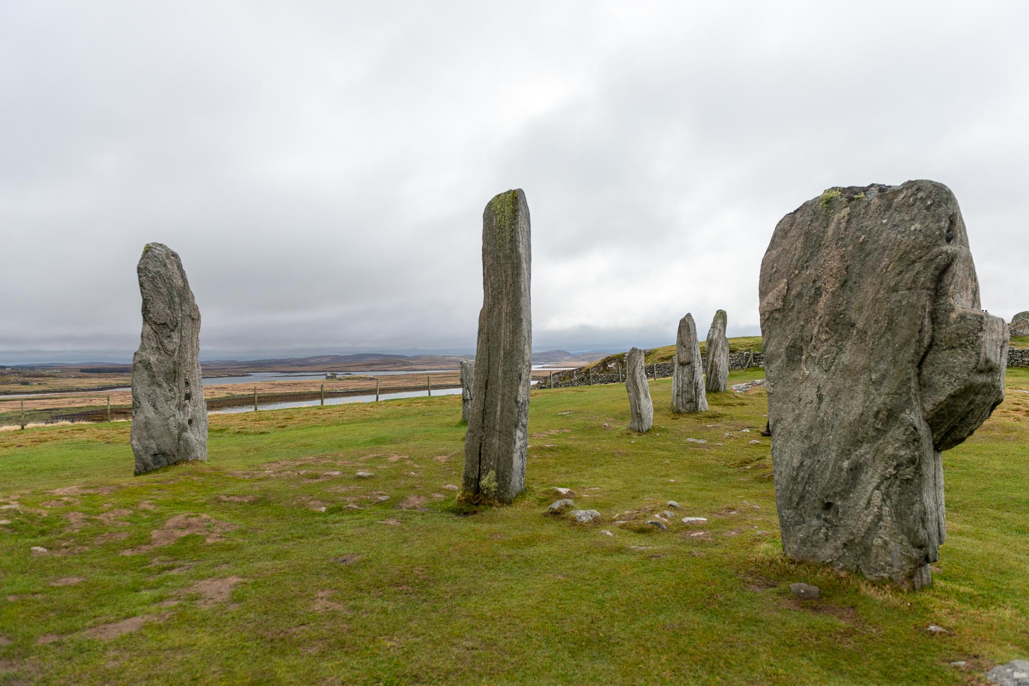Callanish, die größte Steinformation der Megalithkultur auf den britischen Inseln, befindet sich auf den Äußeren Hebriden und zwar auf Lewis der Schwesterinsel von Harris. Callanish auch Calanais genannt, liegt bei Breasclete, wo bereits 12 von vermutlich 20 Steinsetzungen ausgegraben wurden. Bei diesen Konstruktionen handelt es sich vor allem um Steinreihen (Alignements) und Steinkreisen, die während der Jungsteinzeit - etwa 3000 v. Chr. - errichtet wurden. Bei den Steinkreisen werden sie auf einer Schautafel sogar bereits im Jahr 5000 v. Chr. verortet.