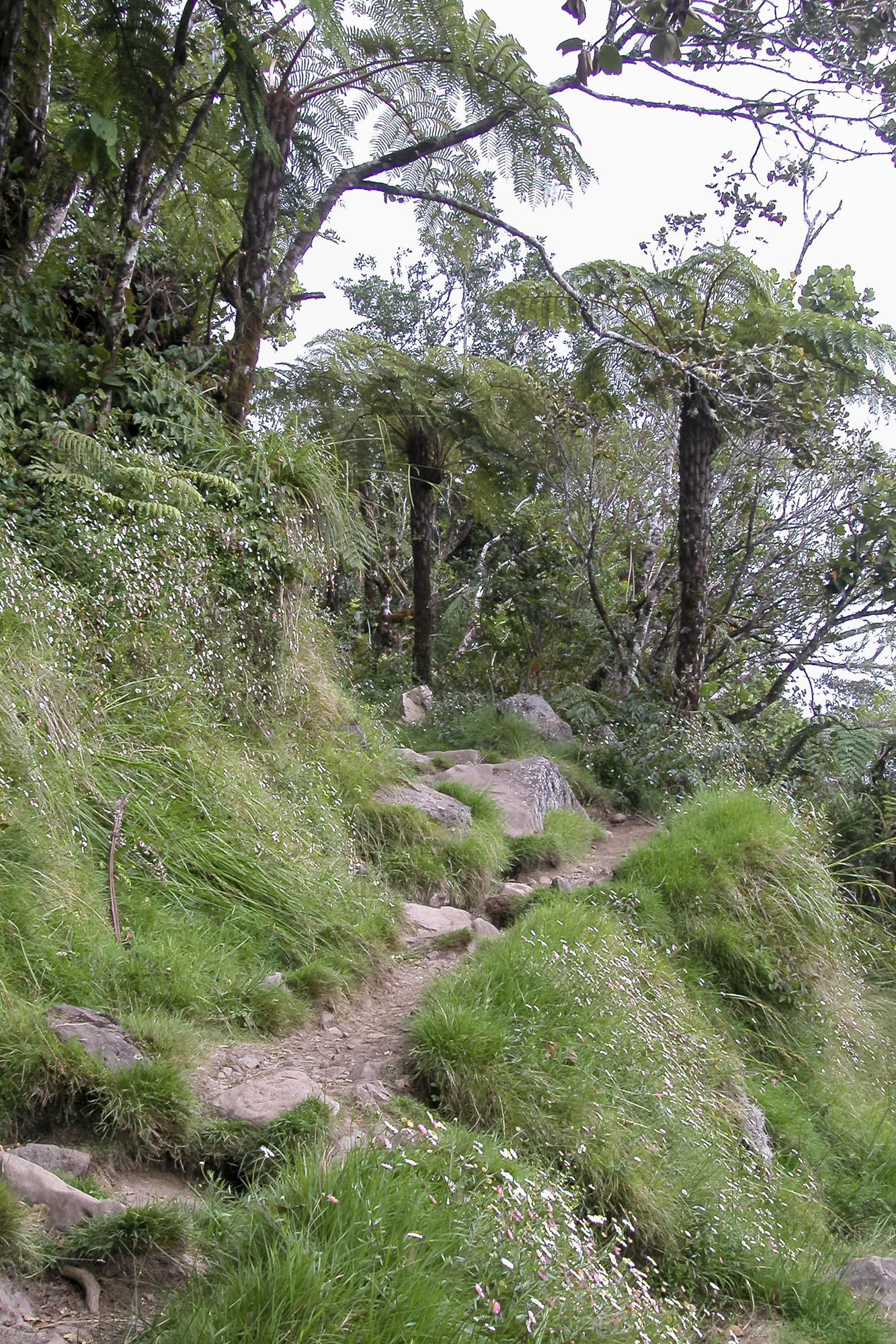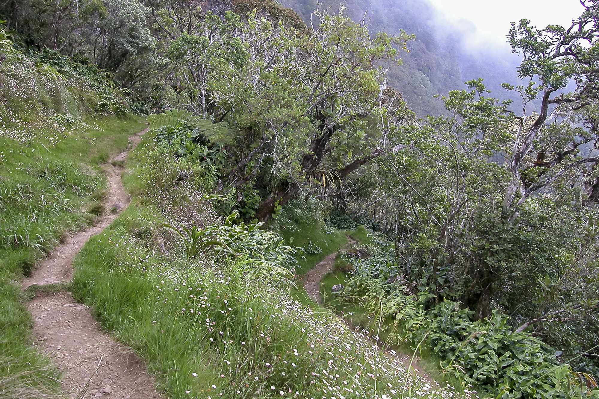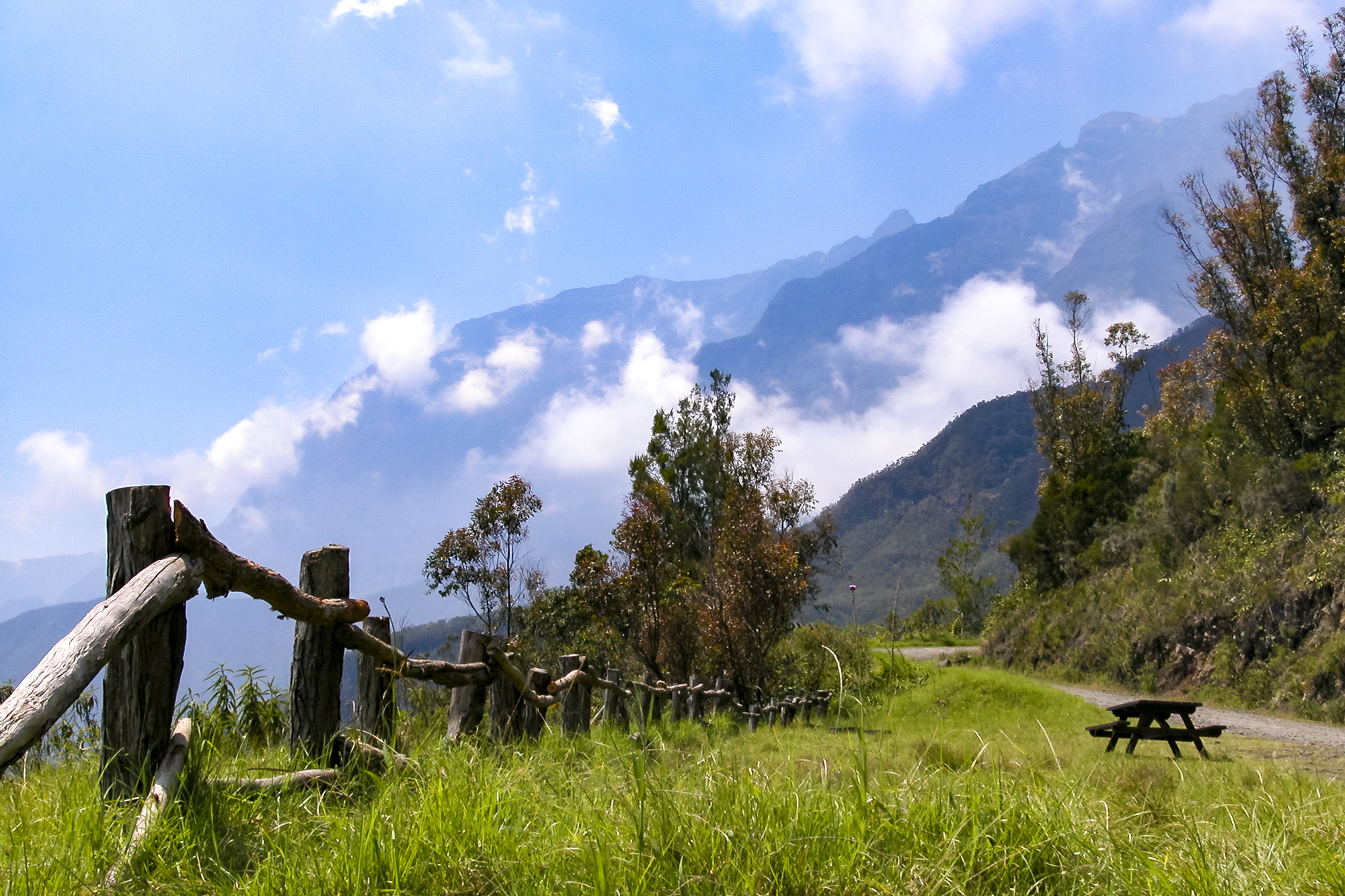 Eine Wanderung durch die Schluchten und über die Bergrücken des "Cirque de Mafate" ist überwältigend. Wir starteten morgens auf der Nordseite der riesigen Caldera des Piton des Neiges, überquerten den Col de Fourche (1.946 m) und erreichten schließlich vor Einbruch der Dunkelheit den kleinen Bergort La Nouvelle (1450 m), der allerdings im dichtem Nebel verborgen lag. Umso größer war unsere Überraschung am Morgen, als wir unter blauem Himmel bei strahlendem Sonnenschein die Wanderung zum nächsten Bergort namens Marla fortsetzen konnten. Der Weg nach La Nouvell war wunderschön. Begleitet von Vogelgezwitscher durchquerten wir bei den An- und Abstiegen mehrere Vegetationsstufen und sahen dabei neben prächtigen Blumen auch die mächtigen Farne, deren kleinwüchsige Verwandten in Europa gerade mal bis zu den Kniekehlen reichen.