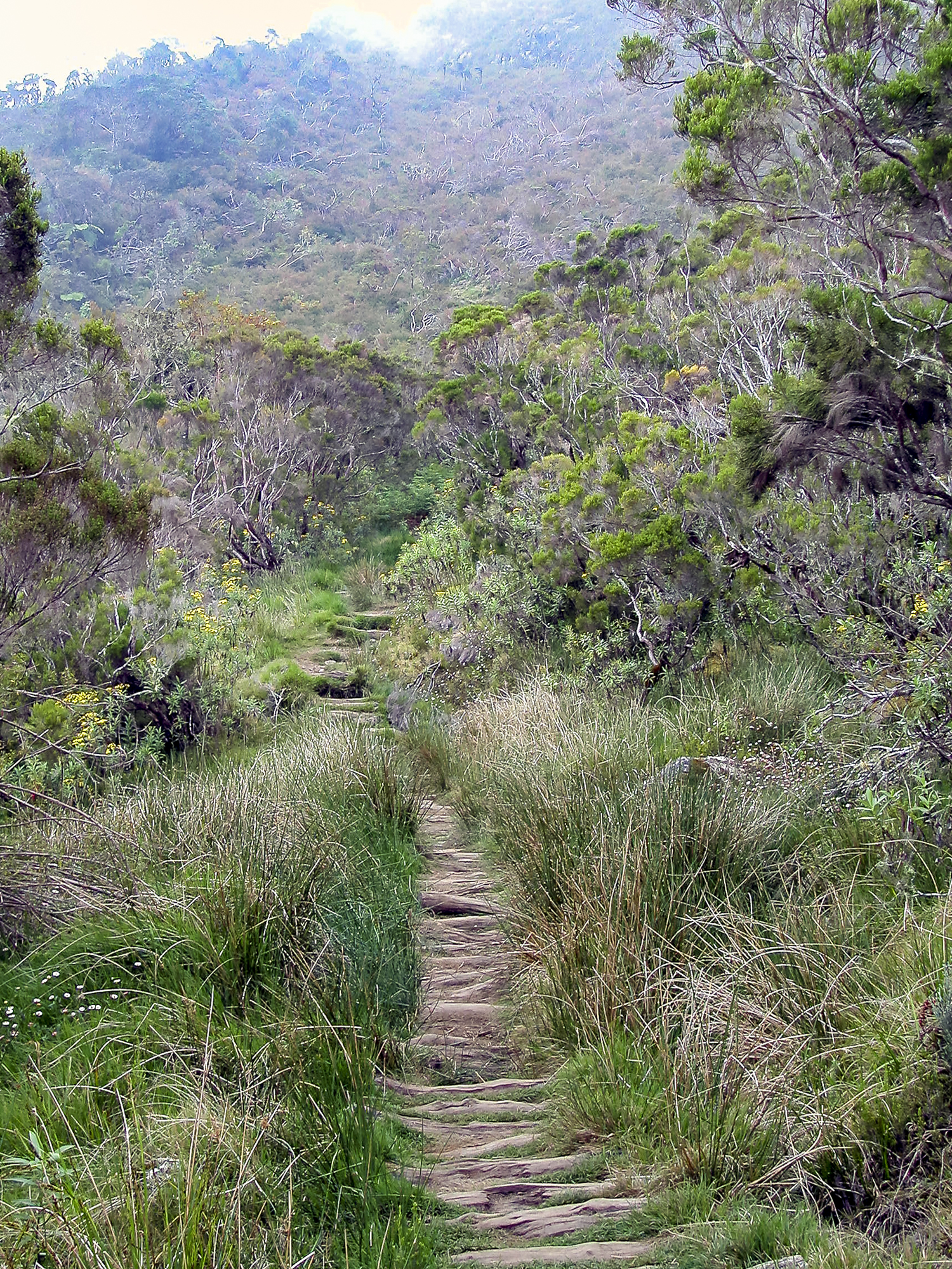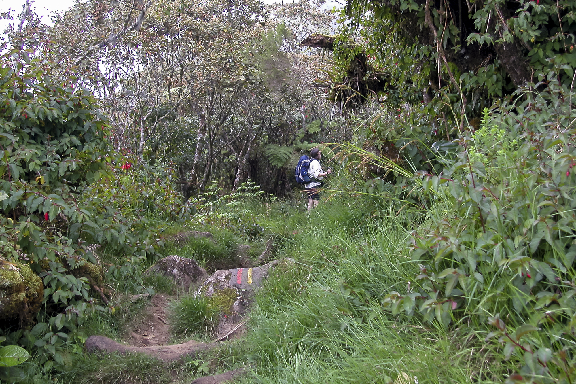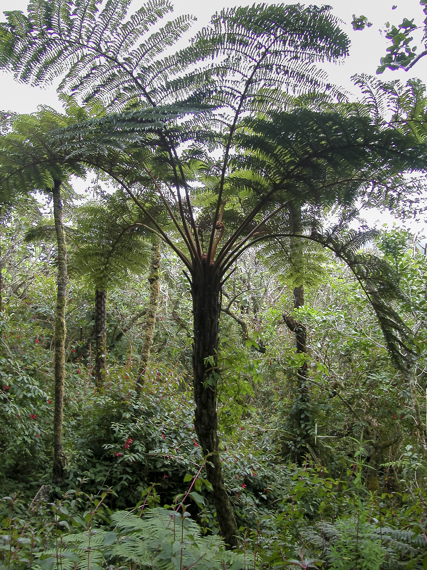 Eine Wanderung durch die Schluchten und über die Bergrücken des "Cirque de Mafate" ist überwältigend. Wir starteten morgens auf der Nordseite der riesigen Caldera des Piton des Neiges, überquerten den Col de Fourche (1.946 m) und erreichten schließlich vor Einbruch der Dunkelheit den kleinen Bergort La Nouvelle (1450 m), der allerdings im dichtem Nebel verborgen lag. Umso größer war unsere Überraschung am Morgen, als wir unter blauem Himmel bei strahlendem Sonnenschein die Wanderung zum nächsten Bergort namens Marla fortsetzen konnten. Der Weg nach La Nouvell war wunderschön. Begleitet von Vogelgezwitscher durchquerten wir bei den An- und Abstiegen mehrere Vegetationsstufen und sahen dabei neben prächtigen Blumen auch die mächtigen Farne, deren kleinwüchsige Verwandten in Europa gerade mal bis zu den Kniekehlen reichen.