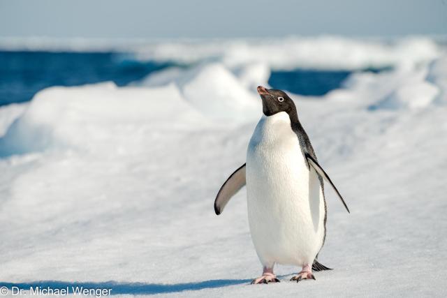 Der Adeliepinguin (Pygoscelis adeliae) ist eine der bekanntesten und am weitesten verbreiteten Pinguinarten in der Antarktis. Mit seinem klassischen schwarz-weißen Gefieder und den charakteristischen weißen Augenringen ist er ein Sinnbild für die Schönheit und Anpassungsfähigkeit der Tierwelt im eisigen Süden.